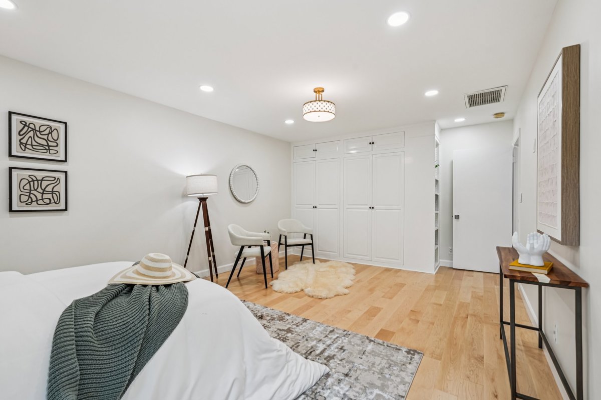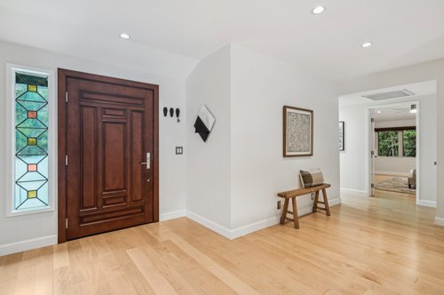 Tucked away at the end of a quiet cul-de-sac in the coveted Arcadia Unified School District, this 4-bed plus office, 4-full bath single-level home offers lots of square footage of updated living space on a ~30,000 sq ft lot. The flexible floor plan supports multi-gen living with a separate wing featuring its own bedroom and full bath. Interior highlights include recessed lighting, engineered hardwood floors, formal dining room, and a remodeled kitchen with quartz countertops, gas cooktop, dual electric ovens, island seating, and walk-in pantry. The home is wired with Cat5 and prepped for surround sound. Exterior features include a saltwater pool and spa with micro-pebble finish, covered patio, large fenced backyard, leased solar with battery backup, dual EV charging, and a finished garage. Updated plumbing, newer windows, central HVAC, RV hookups and a tankless water heater add to the home's desirability.