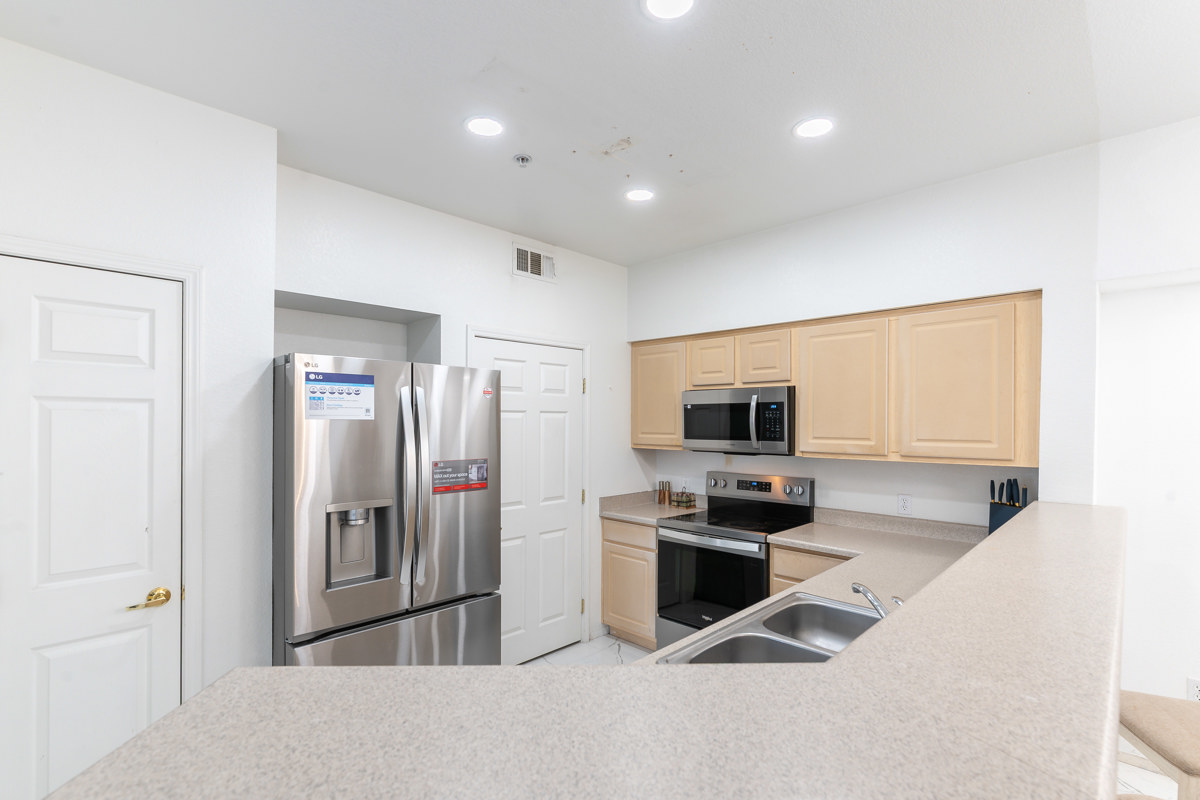 Beautifully upgraded condo in a prime Northwest location!!! This stylish 2 bedroom 2 Bath unit is in a gated community featuring a full remodel with modern finishes throughout. Enjoy cooking in a refreshed kitchen with a brand new whirlpool stove, Samsung dishwasher and microwave, and a sleek LG refrigerator. The home showcases brand new porcelain tile, New Kohler faucets, Upgraded shower in primary bathroom and recessed lighting that makes the room bight and contemporary. A unique feature- No residential downstairs neighbor offering extra peace and quiet. The unit faces Durango providing open views and easy access. Come check out this condo today! WON'T LAST !!!
